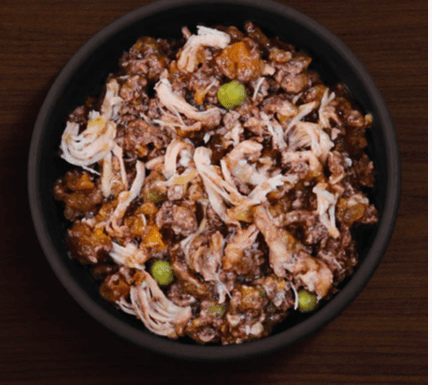 Our grain free Complete Wet Food is made with 90% butcher-prepared meat, carefully combined with fresh vegetables, vitamins and minerals… that’s it!