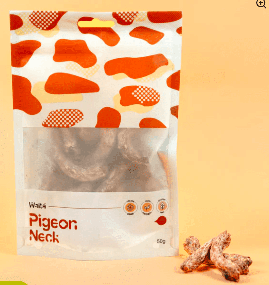 Give your pet a naturally nutritious treat with WAITA Freeze Dried Pigeon Neck. Carefully freeze dried to lock in flavour and nutrients, this single ingredient snack provides a wholesome and protein-rich reward your dog will love. The gentle freeze drying process preserves the natural taste and texture of pigeon while maintaining essential nutrients without the need for artificial additives or preservatives.