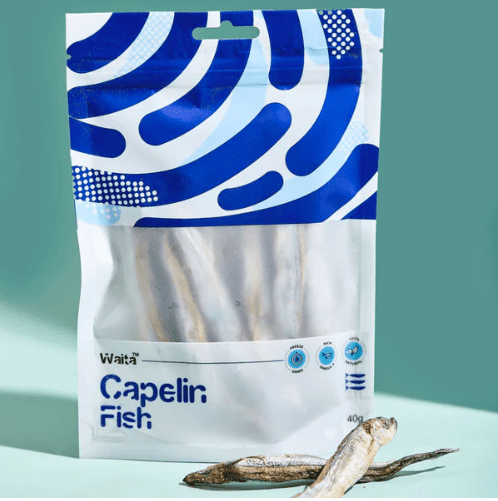 Waita Freeze-Dried Capelin is made from 100% whole capelin fish, gently freeze-dried to preserve its complete, natural nutrition. Served whole, including tiny, edible bones, this treat is packed with Omega-3 fatty acids for skin and coat health. It is also a natural source of calcium. What makes it truly special is its biologically appropriate format as a novel, hypoallergenic protein, offering a complete and functional snack that supports joints, bones, and vitality for both cats and dogs.
