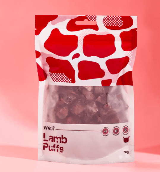 Waita Air-Dried Lamb Puffs. Made from 100% lamb lung, these tasty bites are gently air-dried to preserve natural flavour, aroma, and nutrients. Naturally firm and chewy, they’re ideal for dogs that enjoy a satisfying crunch and for cats that benefit from gentle tooth abrasion and oral stimulation.