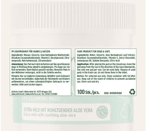 Our extra mild and fragrance-free formula cleans and cares for your dog's eyes in a natural way. AniForte® eye cleaning pads are also suitable for particularly sensitive and young dogs.
