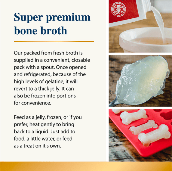 Gentle on the stomach and great for recovery: Our broth is incredibly gentle on the digestive system, meaning it’s great for sensitive pets, sick pets, or those in recovery. It’s an excellent product for stomach upsets, and bouts of diarrhoea and can help with reduction of gas and acid reflux.