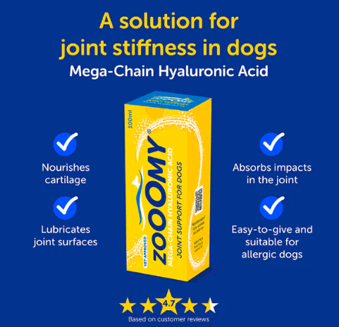 Choose Zooomy Hyaluronic Acid Joint Supplement for a trustworthy, effective way to keep your dog's joints healthy and happy. Offer them the comfort and mobility they deserve with this gentle, yet powerful, joint support formula.